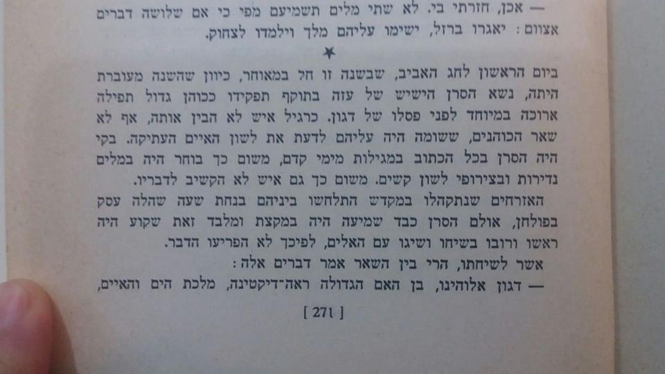 לא נותר לי אלא להביא את הדברים של כהן פלשתים בספר האהוב עליי שמשון. הנאום הזה מייצג, להבנתי, את הנתק שאנחנו חווים כרגע בין הערכים והתרבות שהיו אמורים להיות שלנו – כאתוס וכקודקס מכוון בונה ומדריך – ובין ההתבהמות הכללית,ההפקרות וההתפרקות הבלתי נמנעת שלא לדבר על התרעלה המוסרית והסמבטיון הפנימי שהממשלה הזו מובילה אותנו אליו.