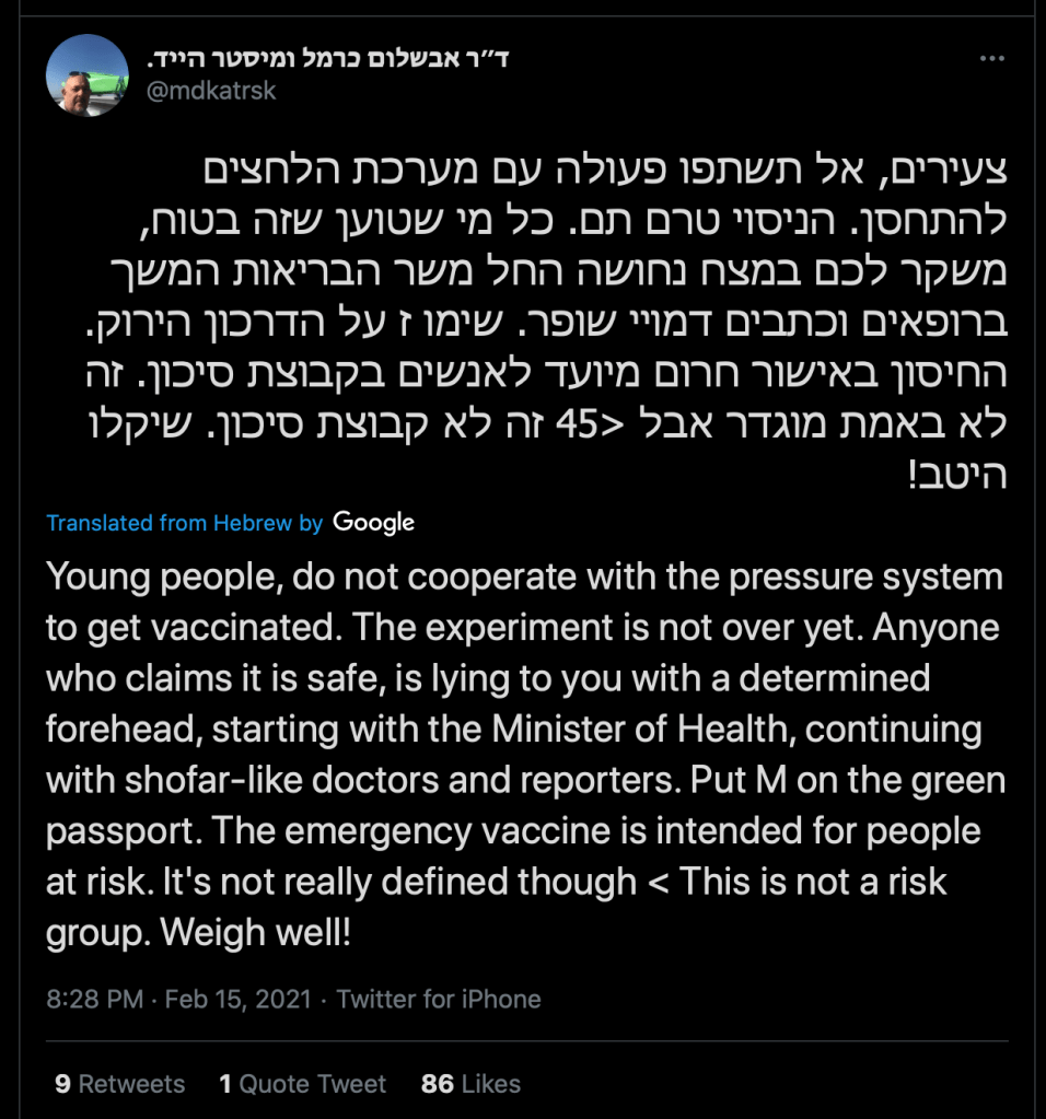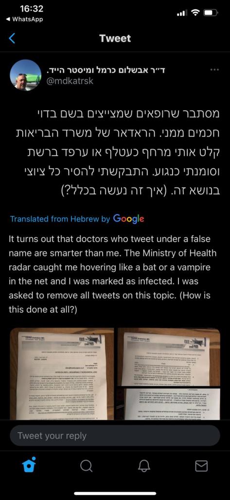 Posted on 17/02/2021 1984 – here we are As part of the Israeli Ministry of Health efforts to vaccinate (if needed by force) the Israeli population, Dr who voice different opinions are silenced. לשתף Click to share on X (Opens in new window) X Click to share on Facebook (Opens in new window) Facebook Click to print (Opens in new window) Print Click to share on LinkedIn (Opens in new window) LinkedIn Click to share on Reddit (Opens in new window) Reddit Click to share on Tumblr (Opens in new window) Tumblr Click to share on Pinterest (Opens in new window) Pinterest Click to share on Pocket (Opens in new window) Pocket Click to share on Telegram (Opens in new window) Telegram Click to share on WhatsApp (Opens in new window) WhatsApp Click to email a link to a friend (Opens in new window) Email Like Loading... קשור